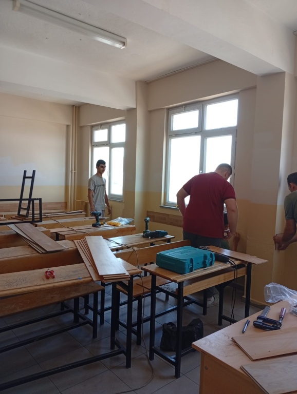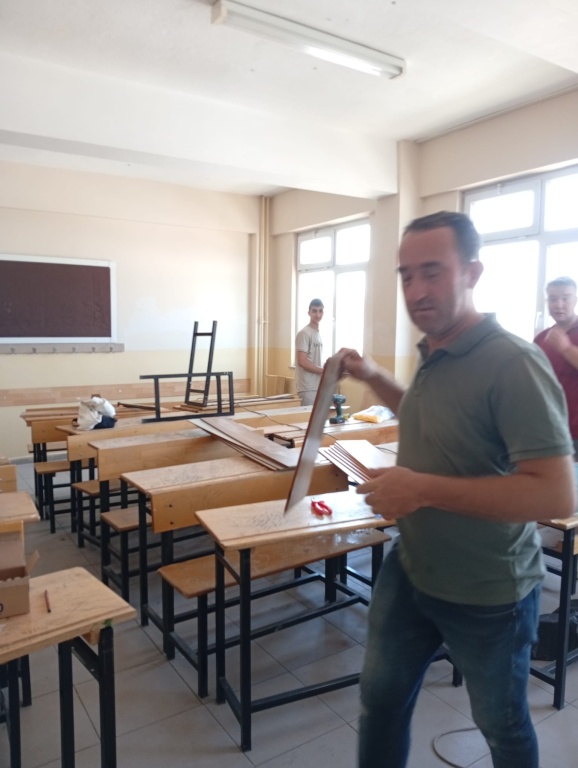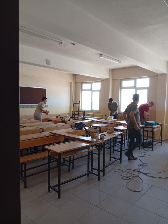 Okulumuza ait dersliklerimiz, sıralarımız ve öğrenci tuvaletlerimiz başta olmak üzere okulumuz her konuda yeni eğitim öğretim yılına hazır hale getirilmiştir. Tüm bu çalışmalarda gönüllü olarak görev alan Endüstriyel Otomasyon Teknolojileri Alan Öğretmenimiz Fatih GENLİ'ye ve fedakarca emek veren öğrencilerimize can-ı gönülden teşekkür ederiz.