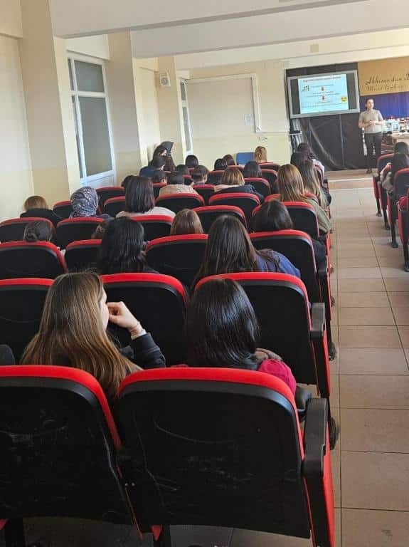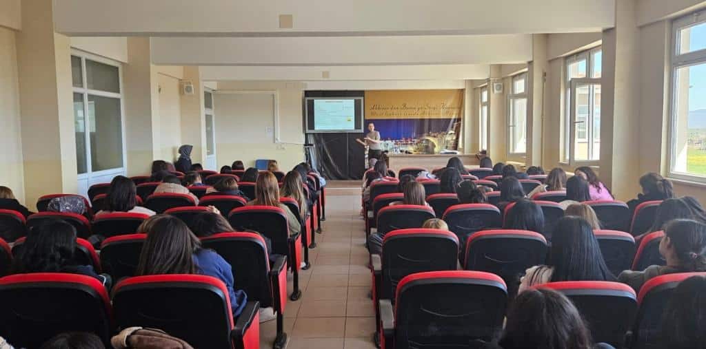 Seminerde, doğru beslenme alışkanlıklarının kazanılmasının yaşam kalitesine olan olumlu etkileri vurgulanırken, obezitenin sağlık üzerindeki kısa ve uzun vadeli risklerine dikkat çekildi. Emel Koçoğlu, öğrencilerimize günlük yaşamda uygulanabilir pratik öneriler sunarak sağlıklı bir yaşam tarzı için farkındalık oluşturdu.